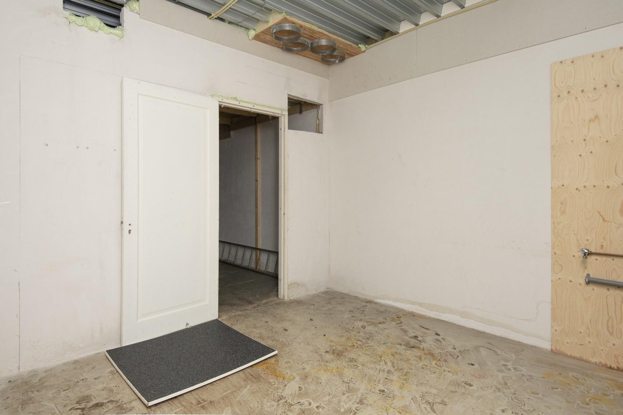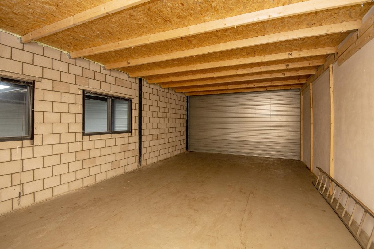 Aan de achterzijde is een ruim magazijn of werkplaats gelegen met een verhuurbare vloer oppervlakte (V.V.O.) van plm. 248 m2 en een vrije hoogte van ruim 6 meter, alsmede een gedeelte opslag ter grootte van plm. 40 m2. Voorzien van een grote elektrische expeditiedeur. Vanuit het magazijn is via een trap de vide op de eerste verdieping te bereiken, die toegang geeft tot de kantine/pantry en een tweetal opslagruimten. De verdieping heeft een oppervlakte van plm. 85 m2.