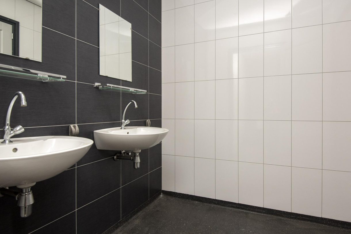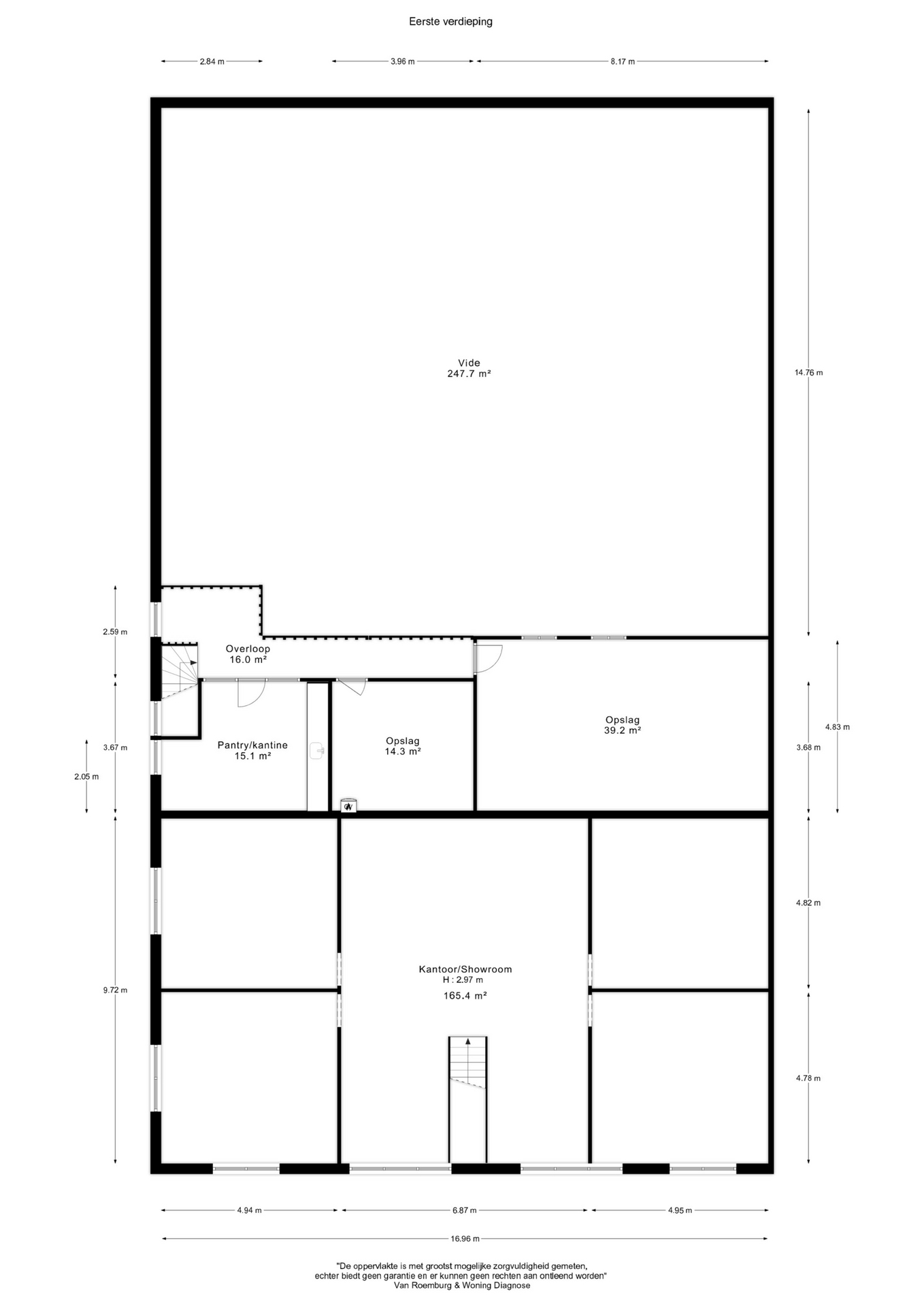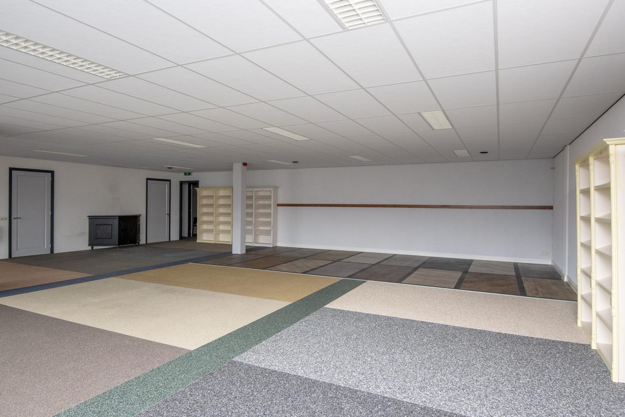 Het object beschikt op de begane grond aan de straatzijde over een fraaie kantoor- of showroom-ruimte met een oppervlakte van in totaal plm. 196 m2. Vanzelfsprekend zij er sanitaire ruimten en een pantry aanwezig. Op de verdieping hierboven is eveneens een kantoorruimte of showroom gelegen ter grootte van plm. 165 m2. Deze is via een ruimte trap vanaf de begane grond te bereiken. De kantoorruimten zijn voorzien van systeemplafonds en voldoende verlichting.