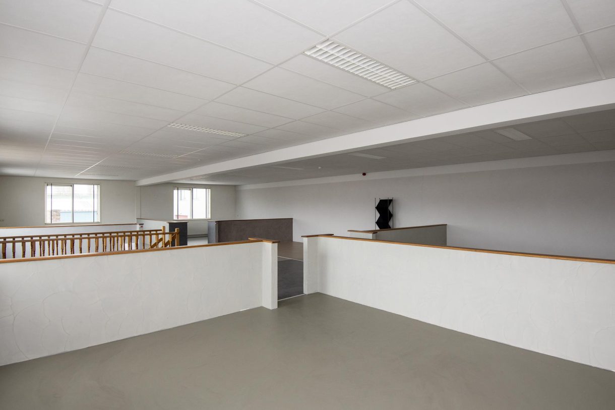 Aan de achterzijde is een ruim magazijn of werkplaats gelegen met een verhuurbare vloer oppervlakte (V.V.O.) van plm. 248 m2 en een vrije hoogte van ruim 6 meter, alsmede een gedeelte opslag ter grootte van plm. 40 m2. Voorzien van een grote elektrische expeditiedeur. Vanuit het magazijn is via een trap de vide op de eerste verdieping te bereiken, die toegang geeft tot de kantine/pantry en een tweetal opslagruimten. De verdieping heeft een oppervlakte van plm. 85 m2.