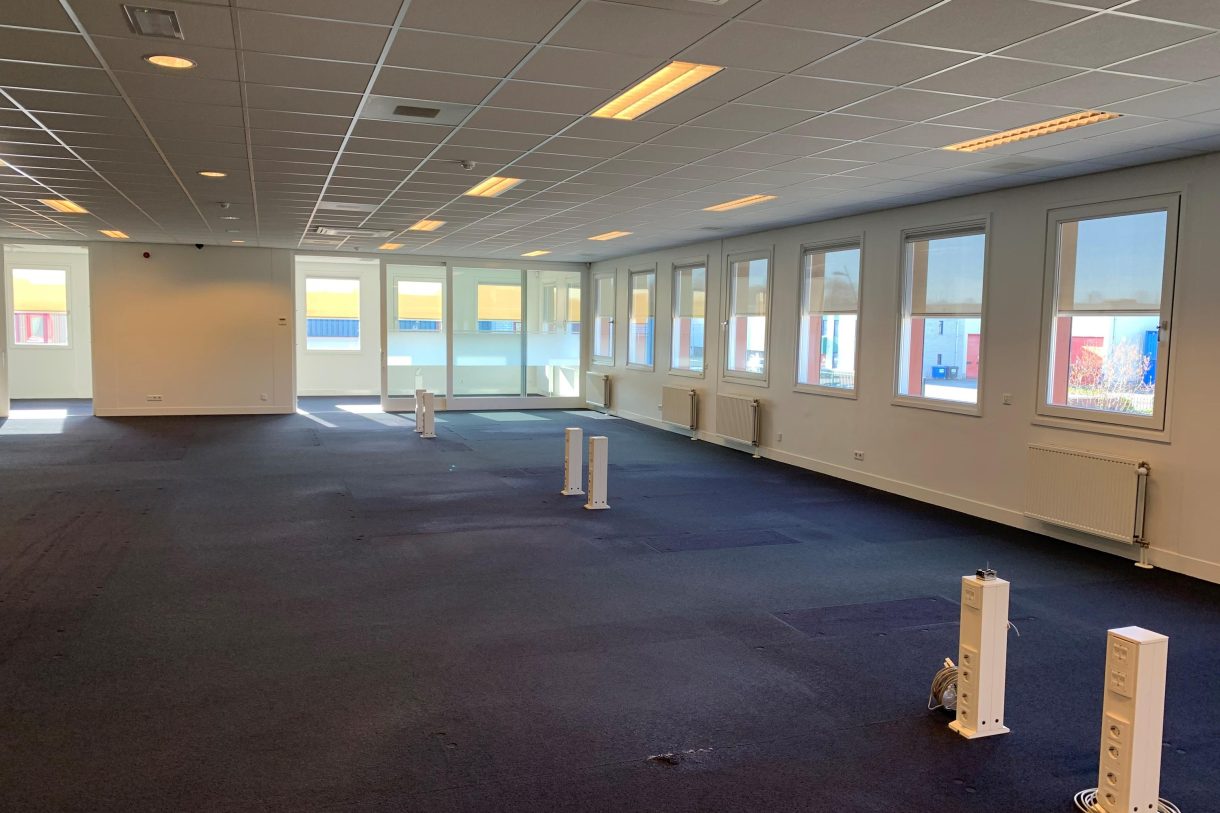 In de Centrale entree op de begane grond bevind zich een werkkast en 2 separate toiletten. Via de trap bereikt u de verdieping met grote kantoorruimte van 194 m2 met 2 naastgelegen separate kantoorruimten en een achtergelegen pantry-ruimte met toegang tot een dakterras.