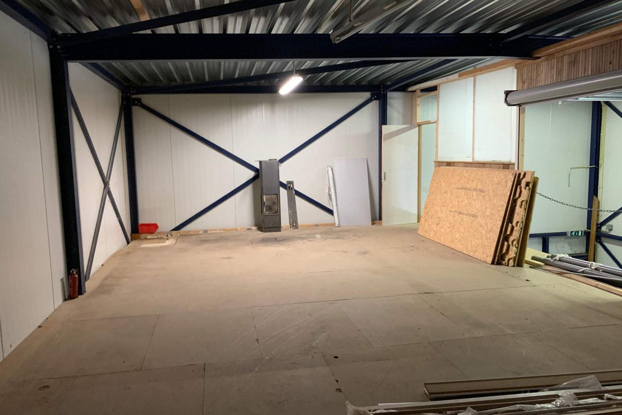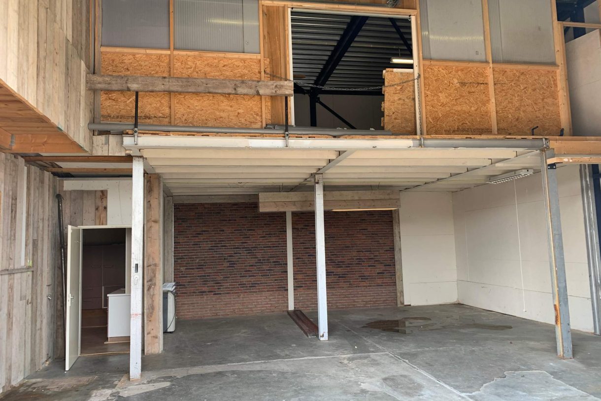 Entree, kantoor/showroom, toilet, pantry, bedrijfshal van 96 m2 met entresol van 64 m2. Vanuit de kantoor/showroom bereikt u via een vast trap de verdieping bestaande uit een open showroom ruimte met luxe keukenblok, een tweetal separate kantoorruimten en toegang tot het entresol.