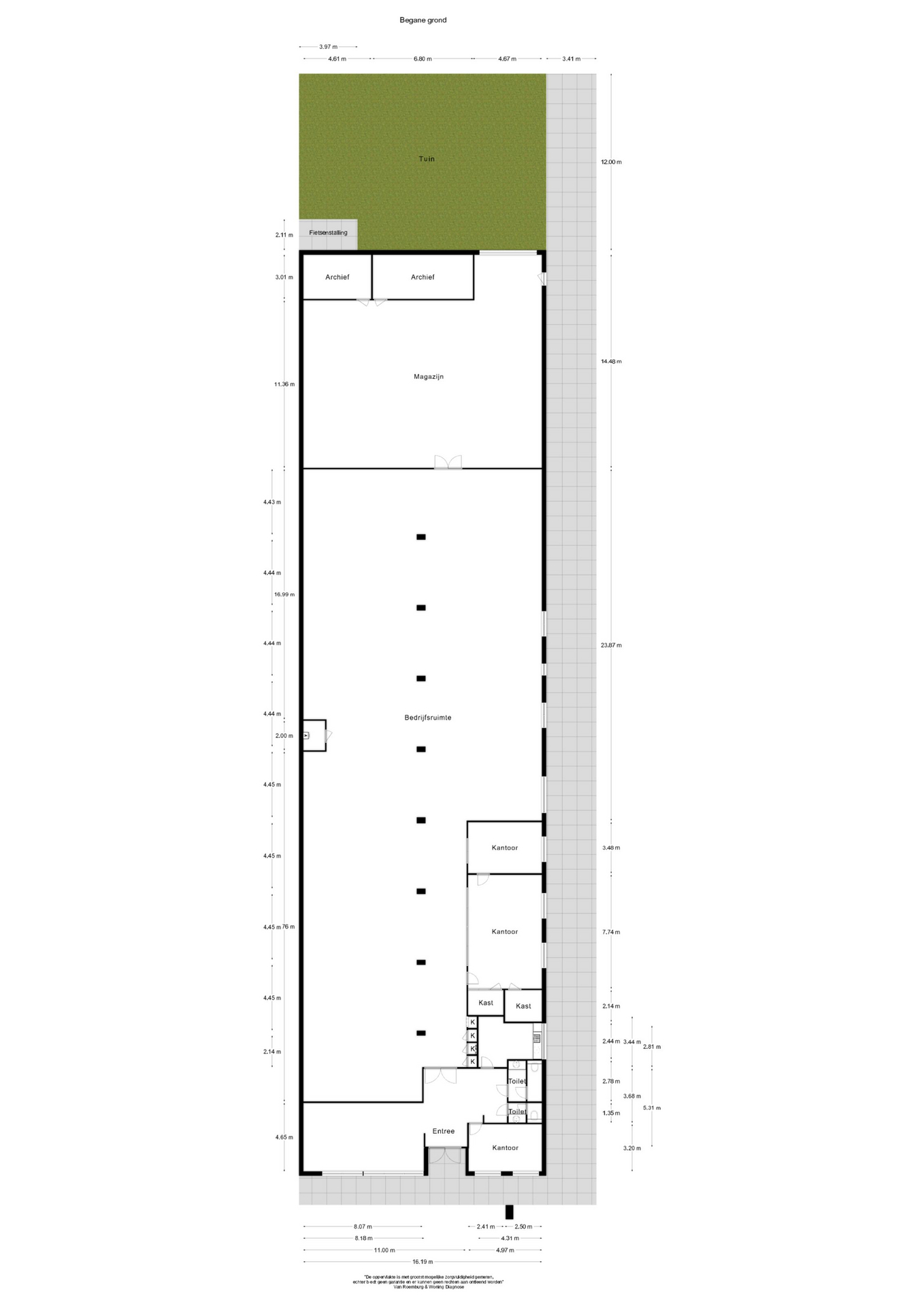 -Hoogte bedrijfshal 2.90 meter;