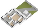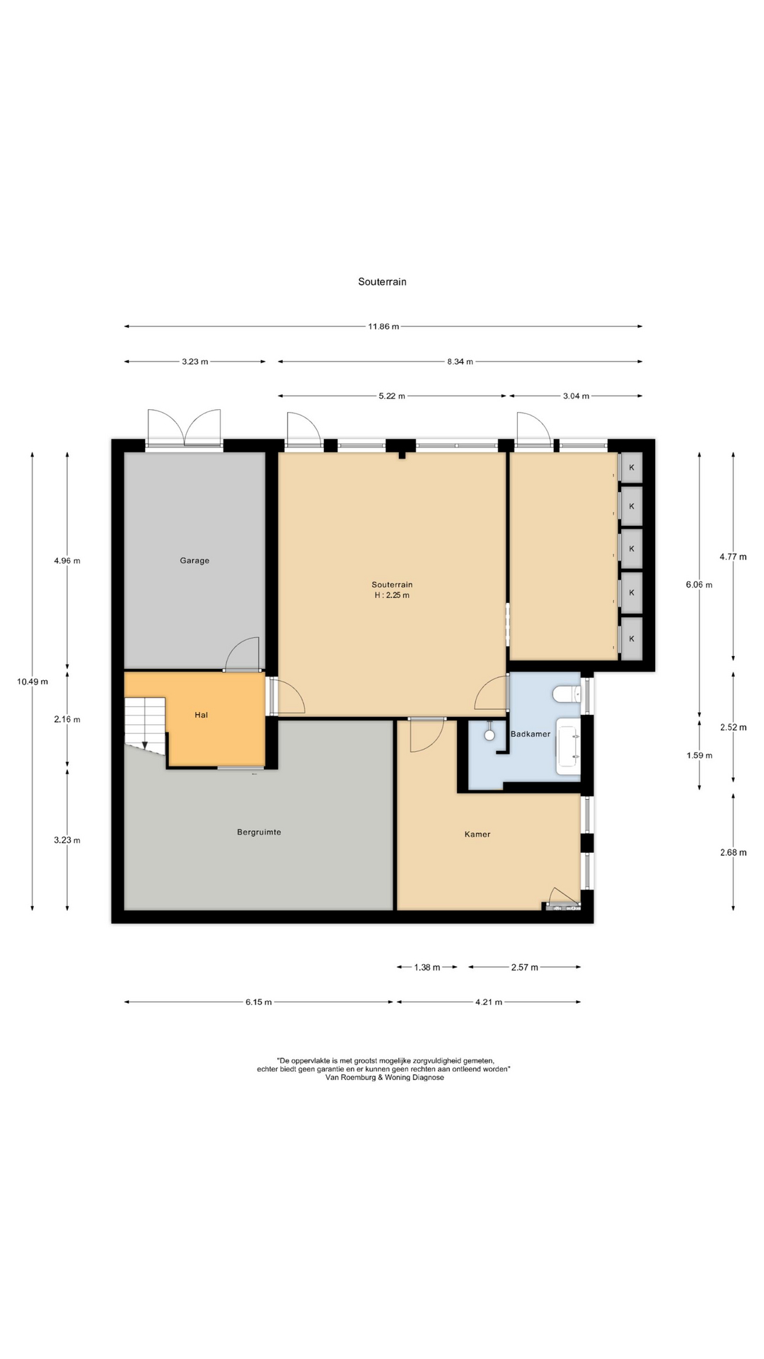 Souterrain: Royaal souterrain van maar liefst 116 m2, opgedeeld in diverse ruimtes. Eén riante kamer van 32 m2 te gebruiken als kantoor/atelier/sportruimte met een doorgang naar een ruimte van 15 m2 die voorzien van een volledige kastenwand. Deze kamers hebben zicht op en directe toegang tot de achtertuin welke te bereiken is middels een royale toegangspoort. In het souterrain bevindt zich verder een bergkamer, een extra kamer en een moderne badkamer met een toilet, dubbele wastafelmeubel en een doucheruimte plus een inpandige garage van 16 m2. Het souterrain is gelijkvloers met de achtertuin, waar genoeg parkeerruimte is voor auto’s/caravan/aanhanger. In deze tuin staat een ruim tuinhuis met overkapping.