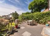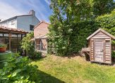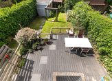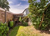 De achtertuin is royaal, perfect op de zon (zuidwest) en biedt volop privacy. Achterin de tuin bevindt zich een vrijstaande stenen garage, uiteraard bereikbaar via een oprit met parkeren op eigen terrein.