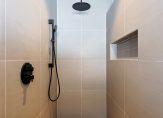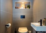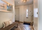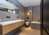 Op de eerste verdieping zijn er 2 slaapkamers en een luxe badkamer met ligbad, inloopdouche, dubbele wastafel en toilet.