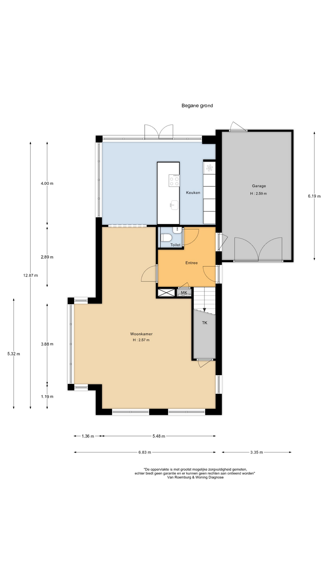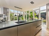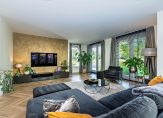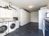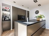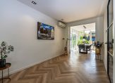 Op de begane grond vind je een royale woonkamer van 44 m² met trapkast en een moderne keuken van 22 m² met zicht op de achtertuin, beide met veel natuurlijk licht. De afwerking is hoogwaardig, met mooie vloeren en een eigentijds kleurenpalet. Aangrenzend aan de entree/hal vindt je de garage welke nu in gebruik is als berging/wasruimte.