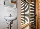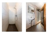 Vanuit de hal heb je toegang tot de meterkast (inclusief krachtstroomgroep voor de sauna), de keurige toiletruimte met een vrij hangend toilet en een fontein, de trap naar de eerste verdieping en de woonkamer. De riante en lichte, tuingerichte woonkamer heeft genoeg leefruimte en een open keuken, voorzien van een Bosch inbouw vaatwasser, een brede AEG inductieplaat en een RVS afzuigkap. De ruime trapkast biedt genoeg ruimte voor een flinke voorraad. De aanwezige vloerverwarming op de begane grond zorgt voor volop indelingsvrijheid. Via de dubbele openslaande deuren kom je in de ruime achtertuin op het oosten voorzien van achterom, een fijn buitenterras met overkapping en een houten berging met elektra. Eerste verdieping: Deze verdieping is ingericht met 3 ruime slaapkamers en de badkamer met een inloopdouche, een wastafel en een toilet. Tweede verdieping: Via een vaste trap kom je op de bovenste verdieping. Dit is een volwaardige verdieping met rondom rechte wanden en beschikt over een grote 4e slaapkamer en een 2e badkamer met een royale inloopdouche, een wastafel, een derde toilet en een sauna met een kachel op krachtstroom. Praktische zaken zoals aansluiting voor witgoedapparatuur en vaste data-aansluiting zijn aanwezig.
