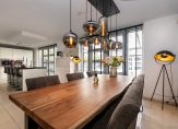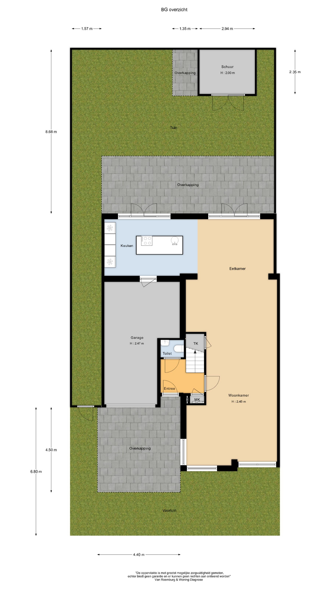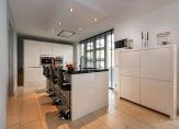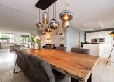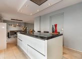 Begane grond: Entree/hal, modern toilet met fontein, riante woonkamer van maar liefst 60 m2 met een luxe open keuken met een kookeiland en alle denkbare inbouwapparatuur, perfect voor gezellige diners en samenzijn met het gezin. Vanuit de woonkamer/keuken is de inpandige garage/berging met witgoed-aansluitingen bereikbaar. Aan de achterzijde grenzend aan de keuken is een riante overkapping gelegen die vanuit de woning met openslaande deuren te bereiken is, deze is bovendien voorzien van een haard voor vele gerieflijke avonden.