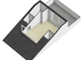 Zolderverdieping: Deze verdieping bestaat nu uit een overloop, 1 riante slaapkamer met dakterras en bergruimte. Maar of je nu een rustige plek zoekt om te werken, een speelkamer voor de kinderen, of een gastenverblijf – de mogelijkheden van de tweede verdieping zijn eindeloos.