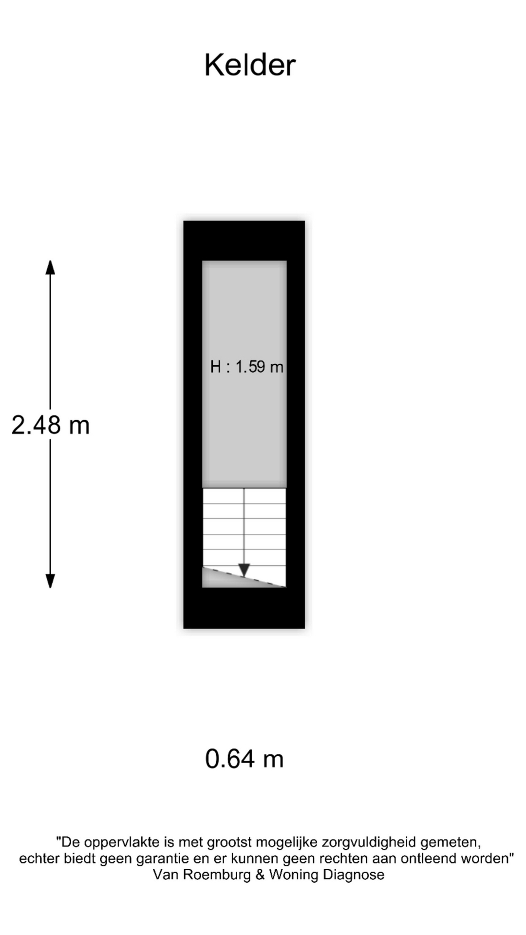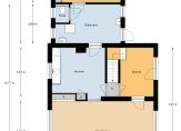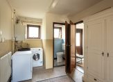 Ruime entree/hal met garderobekast, woonkamer, eenvoudige gesloten keuken met toegang tot de provisiekelder, ruime bijkeuken met achteringang en toilet, slaapkamer met douche.