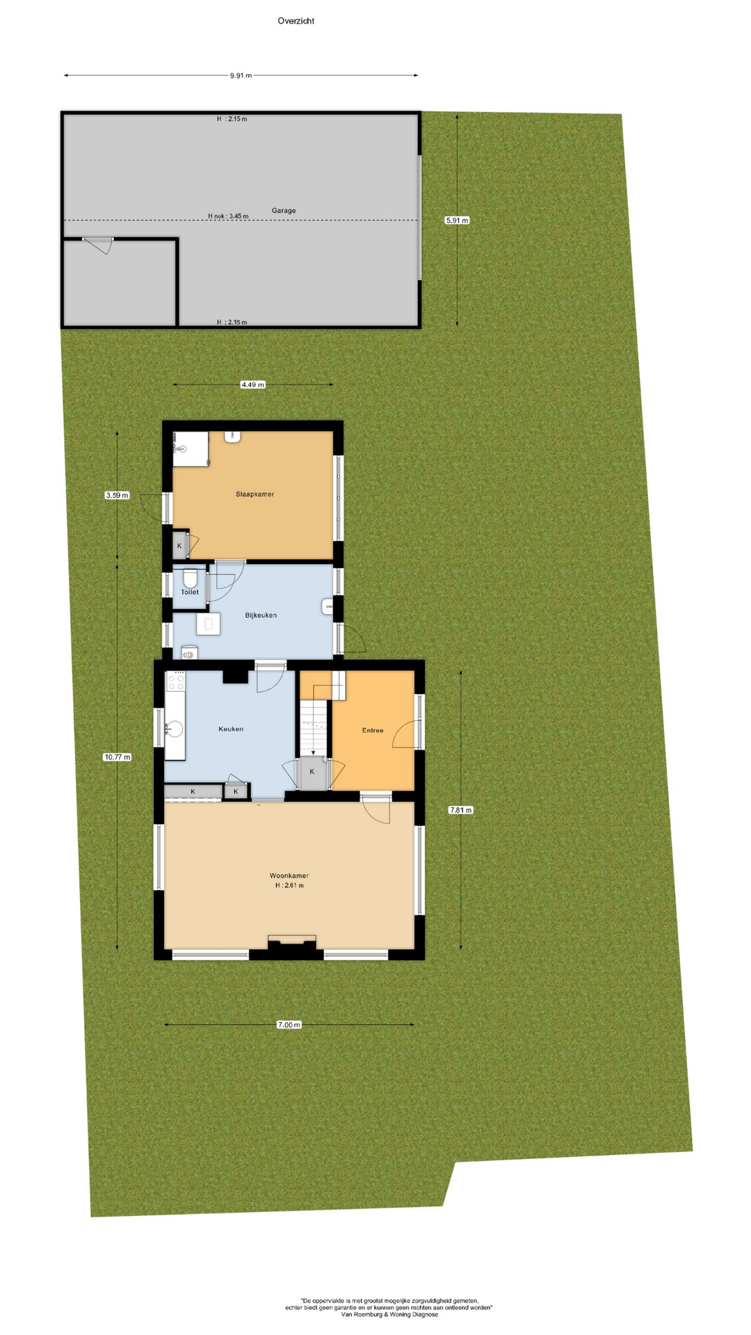 Op het perceel van 588 m2 staat nog een vrijstaande garage (59 m²). Er is voldoende gelegenheid voor het parkeren van meerdere auto’s op eigen terrein.
