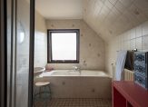 Eerste verdieping: Overloop, 3 slaapkamers, waarbij één slaapkamer toegang heeft tot een ruim balkon/dakterras aan de achterzijde op het westen, de badkamer heeft een wastafel, ligbad met douchegelegenheid en er is nog een separaat 2e toilet. Met een vlizo trap is de bergzolder te bereiken.