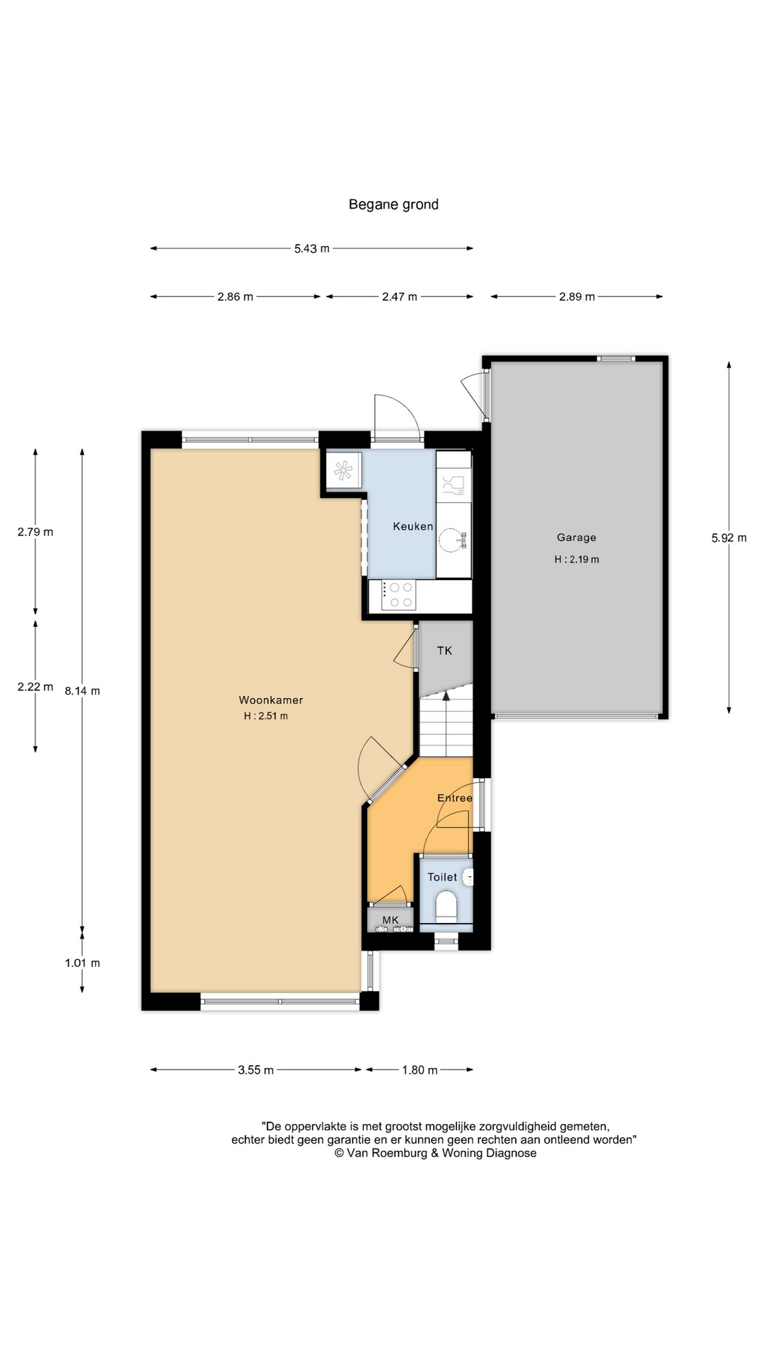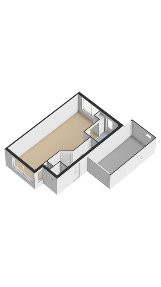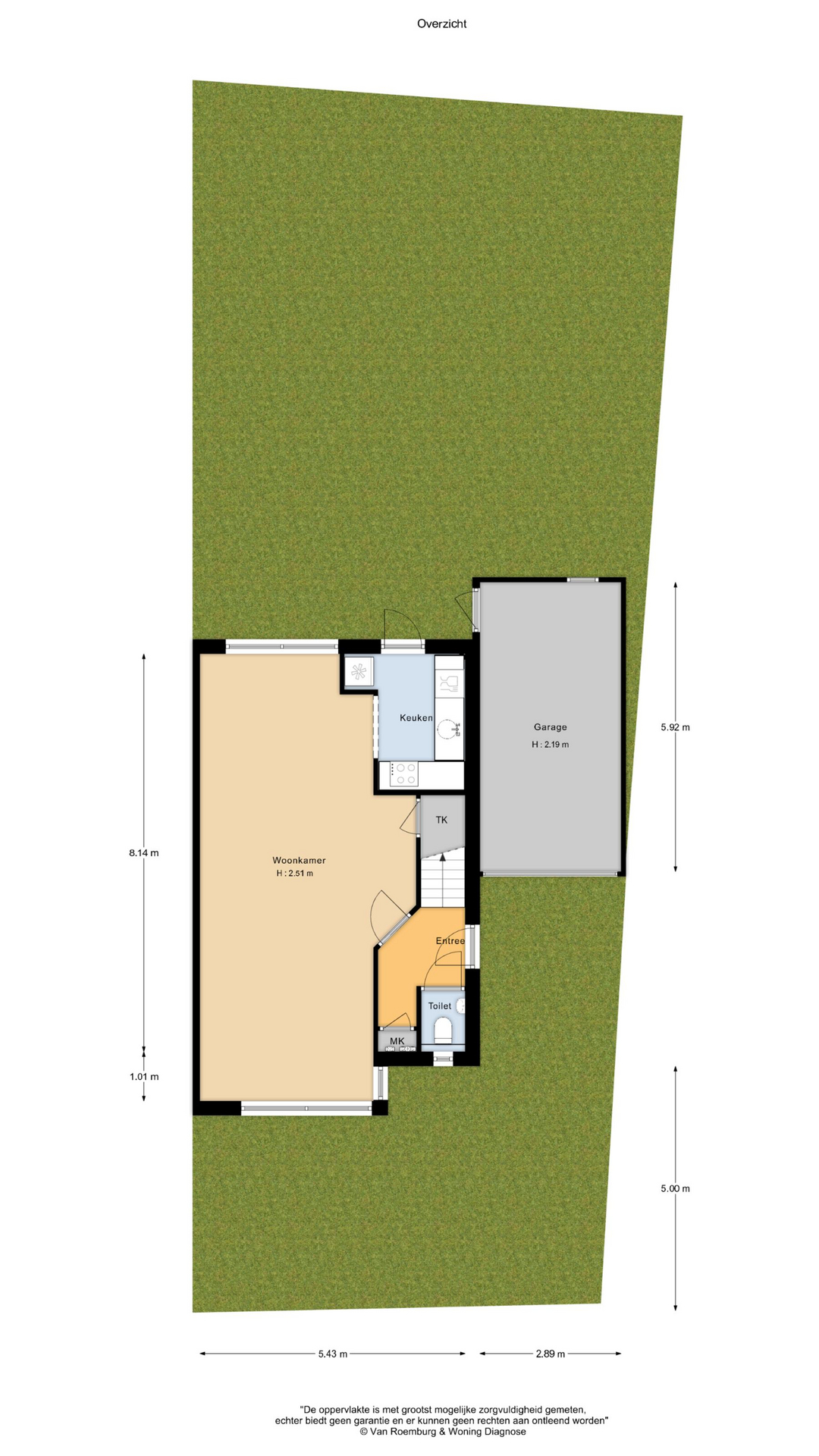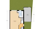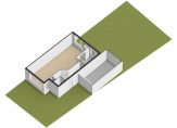 Aangebouwde garage met een elektrische roldeur en een deur naar de achtertuin. Aan de voorzijde is een eigen oprit met parkeermogelijkheid.