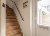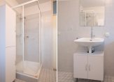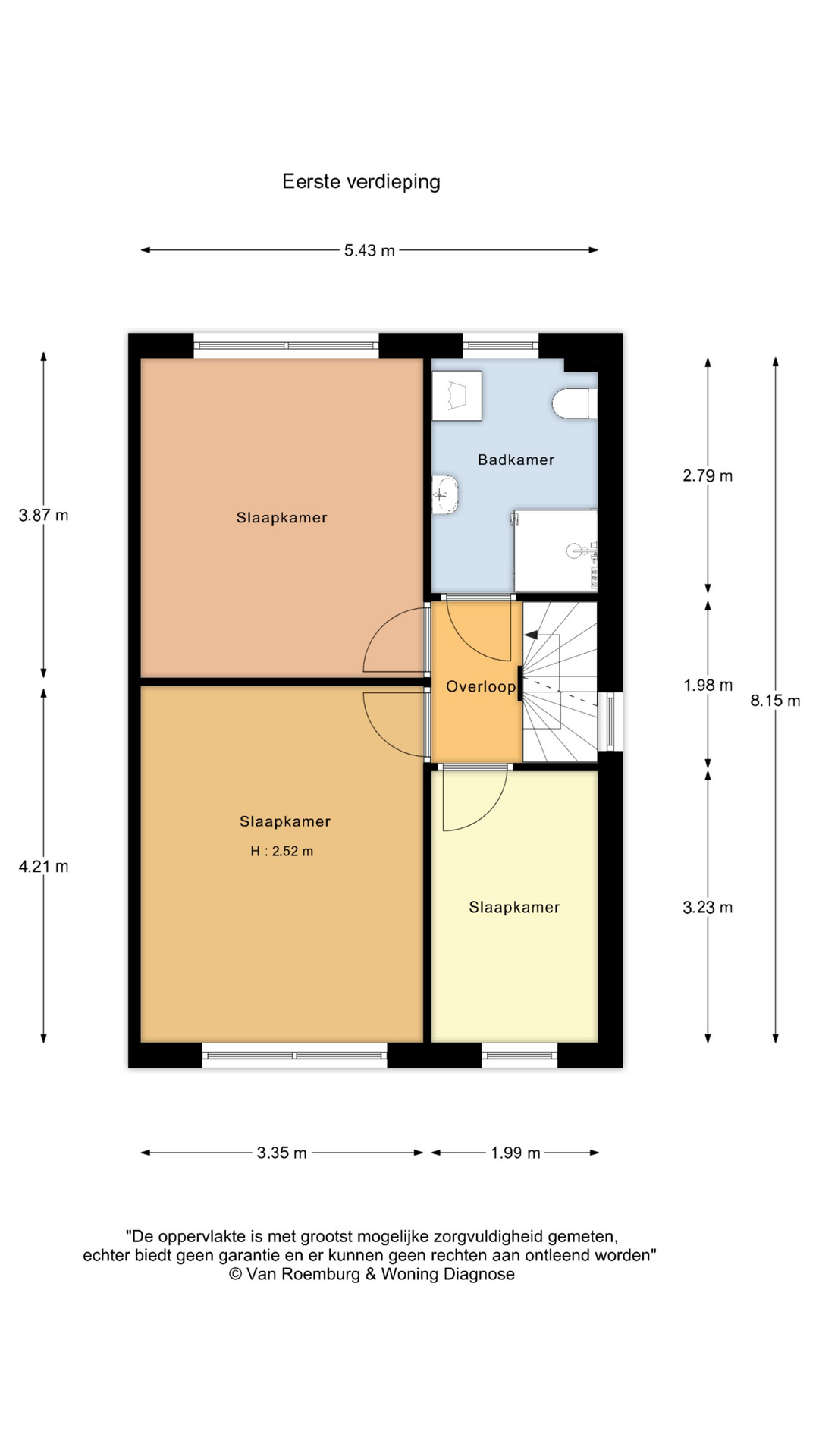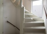 Eerste verdieping: Overloop, 3 slaapkamers, badkamer met douche, toilet, vaste wastafel en wasmachine-aansluiting.