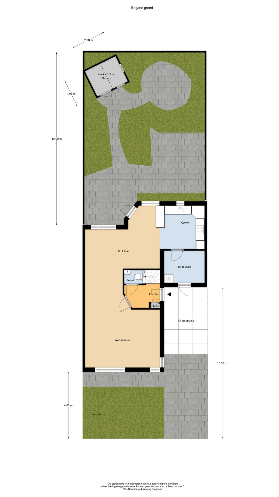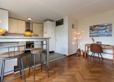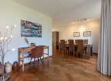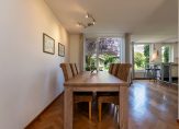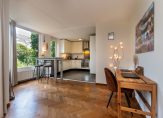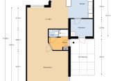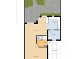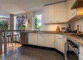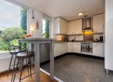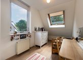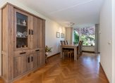De indeling van de begane grond biedt een ruime woonkamer van 47 m², een half open keuken en een aparte bijkeuken met toegang tot de tuin. De woonkamer is heerlijk licht en voorzien van een fraaie parketvloer.