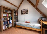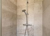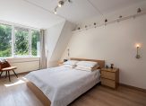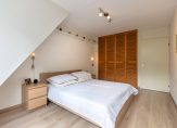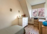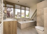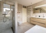 Boven vind je in totaal vier slaapkamers, verdeeld over de eerste en tweede verdieping. Ook hier is er voldoende ruimte en licht. De moderne badkamer is uitgerust met een ligbad, toilet, dubbele wastafel en een inloopdouche, wat het plaatje compleet maakt.