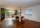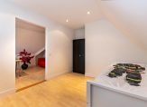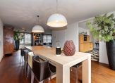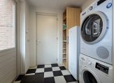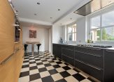 Indeling: Entree/hal, meterkast, modern toilet met fontein, zeer ruime op de tuin gerichte woonkamer (53 m2) met een schuifpui naar de tuin en een aan de woonkamer grenzende Bulthaup keuken met diverse inbouwapparatuur, bijkeuken/berging met witgoedaansluitingen en een achteringang, riante ouderslaapkamer met walk-in closet en luxe moderne badkamer met vloerverwarming, ligbad, inloopdouche, twee wastafels en een toilet.