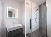 Overloop met toegang tot 3 slaapkamers. Alle slaapkamers zijn voorzien van energiezuinige elektrische convector-radiatoren en de grootste slaapkamer is voorzien van een airco. De badkamer beschikt over een inloopdouche met glazen wand, een toilet, een badkamermeubel met vaste wastafelmeubel, spiegelkast en een designradiator.