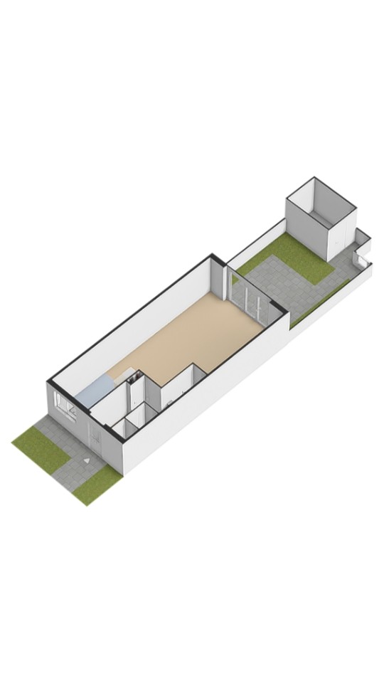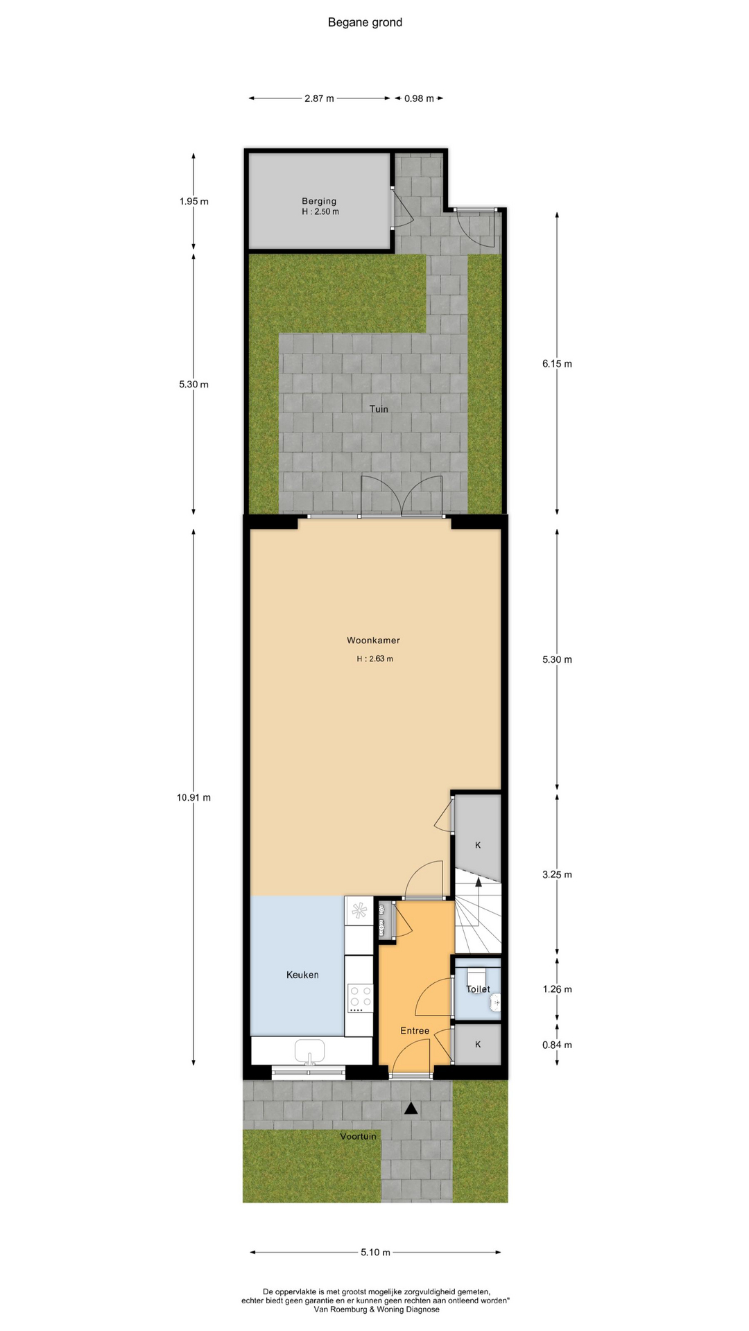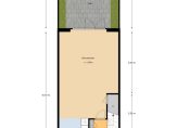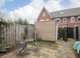 De achtertuin is gelegen op het zuiden en beschikt over een vrijstaande houten schuur en een achterom.