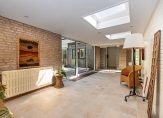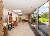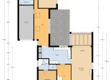Indeling: Entree/hal met toegang tot de slaapkamer met aangrenzende badkamer aan de voorzijde v.v. ligbad, douche en wastafel, toilet, ruime woonkamer met een oppervlakte van ca. 44 m2 met open haard, serre en een plavuizen vloer, woonkeuken (ca. 17 m2) met diverse inbouw-apparatuur, berg-/CV ruimte, open tussenkamer met schuifpui en zicht op de tuin, deur naar de garage, achterhal met witgoedaansluitingen, slaap- of werkkamer, badkamer met douche, wastafel en toilet. Eerste verdieping: Overloop, 2 ruime slaapkamers, badkamer met wastafel en mogelijkheid voor een douche.