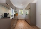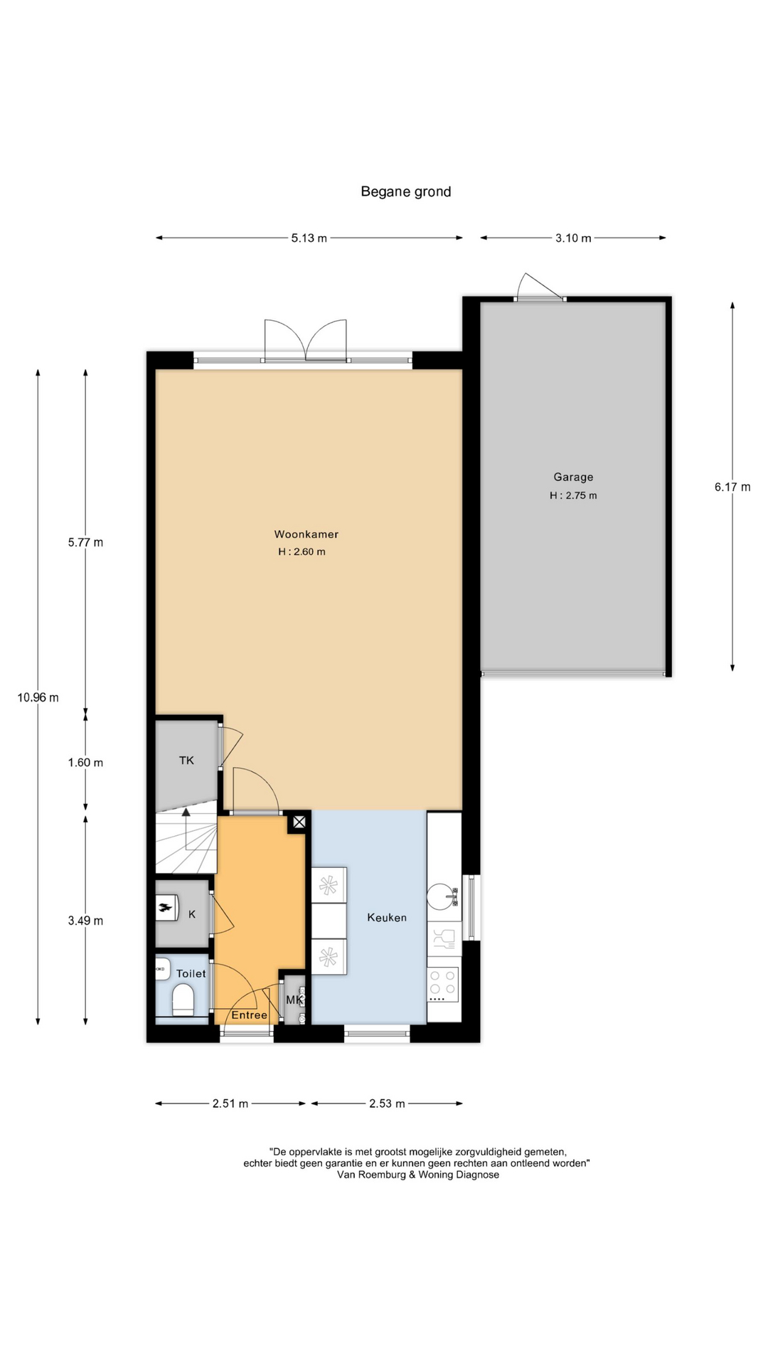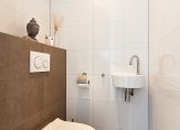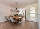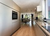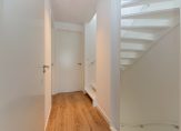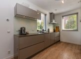Begane grond: Entree/hal, waar zich tevens het toilet, de trapopgang en de meterkast met CV opstelling bevinden. Rechtdoor loopt u de verrassend lichte en ruim opgezette woonkamer (met pvc vloer en vloerverwarming) in, met uitzicht op de achtertuin en openslaande tuindeuren. De open keuken ligt aan de voorzijde en is uitgevoerd in een moderne opstelling met diverse inbouwapparatuur. U beschikt hier over een inductiekookplaat, afzuigkap, combi-oven, vaatwasser, koelkast en vriezer.