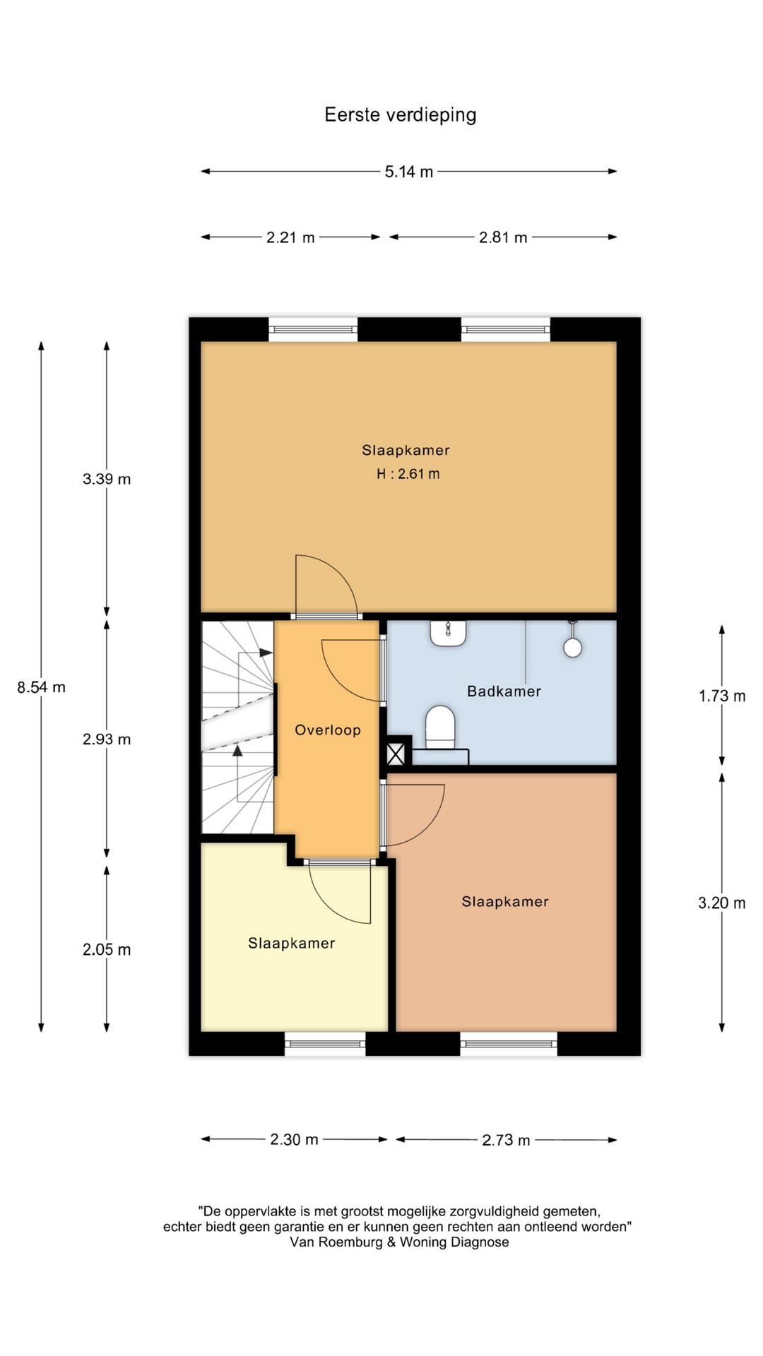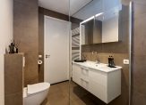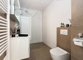 Eerste verdieping: De overloop geeft toegang tot 3 slaapkamers en een moderne badkamer met inloopdouche, toilet, wastafelmeubel en radiator.