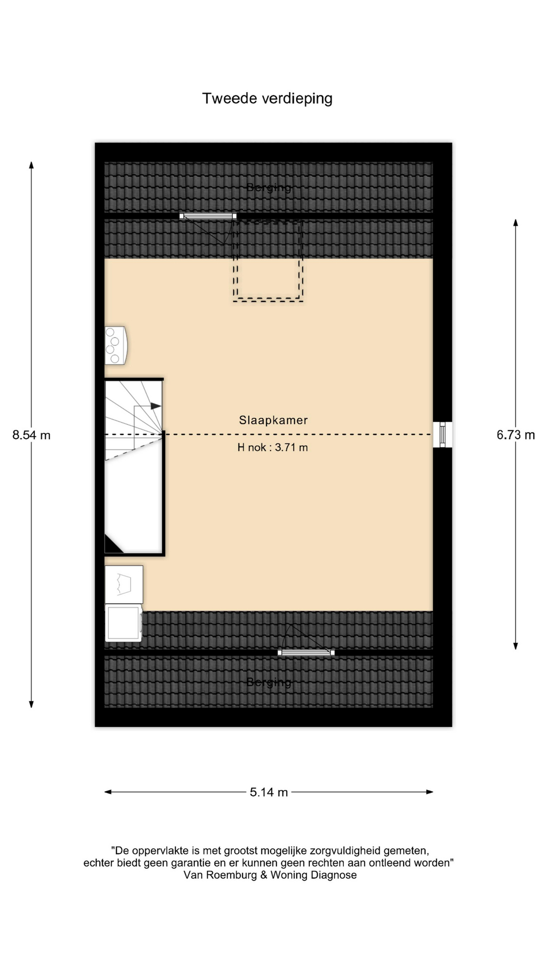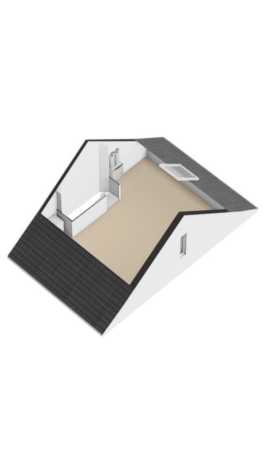 Tweede verdieping; Bereikbaar via een vaste trap, nu een grote zolderruimte met zij- en dakraam maar uitermate geschikt voor de realisatie van één of meerdere slaapkamers.