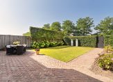 De achtertuin met ruim terras, gazon en fraaie borders is prima gelegen en biedt verrassend veel privacy. Dankzij de diepte van het perceel profiteert u hier van veel zonuren. Aangrenzend is er een garage voor fietsen, tuinmeubilair of gereedschap. De tuin is bereikbaar via een achterom en biedt dankzij de ligging volop comfort.