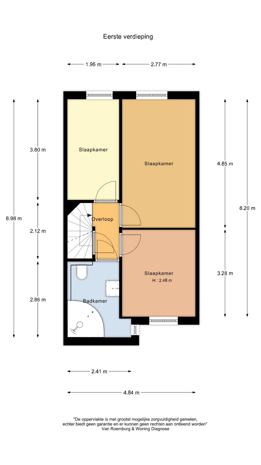 Op de eerste verdieping bevinden zich 3 slaapkamers en een badkamer met ligbad, tweede toilet en wastafelmeubel. Via een vaste trap is de tweede verdieping bereikbaar, met een voorzolder met CV-opstelling en witgoedaansluitingen en een zolderkamer met dakraam.