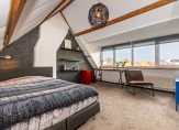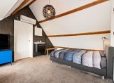 De zolderverdieping beschikt over een voorzolder met witgoedaansluitingen, CV-opstelling en bergruimte. Een dakraam zorgt voor extra lichtinval. De grote zolderkamer, voorzien van een dakkapel, is geschikt als slaapkamer, werkruimte of hobbykamer.