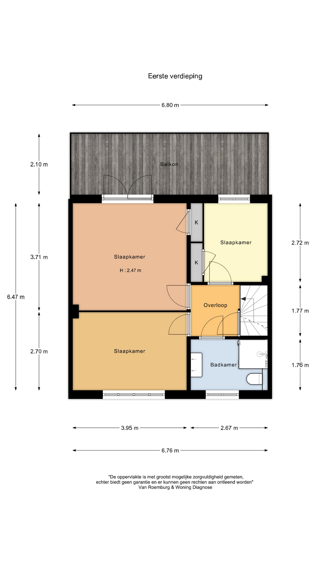 Op de eerste verdieping bevinden zich drie slaapkamers waarvan er twee voorzien zijn van inbouwkasten. De grootste slaapkamer heeft openslaande deuren naar het balkon. De moderne badkamer is uitgerust met een toilet, een ruime douchehoek en een dubbele wastafel.