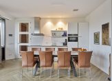De woonkamer/keuken heeft veel lichtinval en een buitengewoon groen uitzicht. In het gehele appartement ligt een fraaie en moderne onderhoudsvriendelijke PVC vloer.