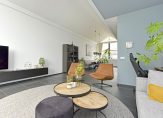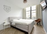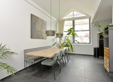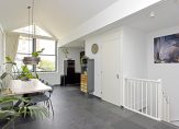 Entree; Ruime hal met meterkast, garderobe en eventueel de mogelijkheid om een fiets te plaatsen. Eerste verdieping: Overloop met inbouwkast, toilet, 2 slaapkamers waarvan er 1 is voorzien van een mooie inbouwkast, nieuwe luxe badkamer met ligbad, een inloopdouche met sunshower en een fraai wastafelmeubel. Tweede verdieping: Via de trapopgang sta je direct in het midden van de loft-achtige woonkamer. Deze royale verdieping met hoge kozijnen heeft veel daglicht, een zeer hoog plafond en toegang tot het zonnige dakterras dat het gevoel van ruimte en privacy onderstreept. De gehele verdieping is voorzien van een fraaie keramische vloer en bestaat uit een zit-/leefgedeelte en een open (woon)keuken met inbouwappartuur. Op deze verdieping bevindt zich tevens een bergkast met opstelling cv-ketel en WTW installatie.