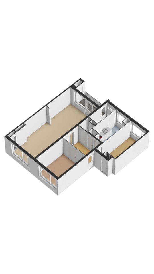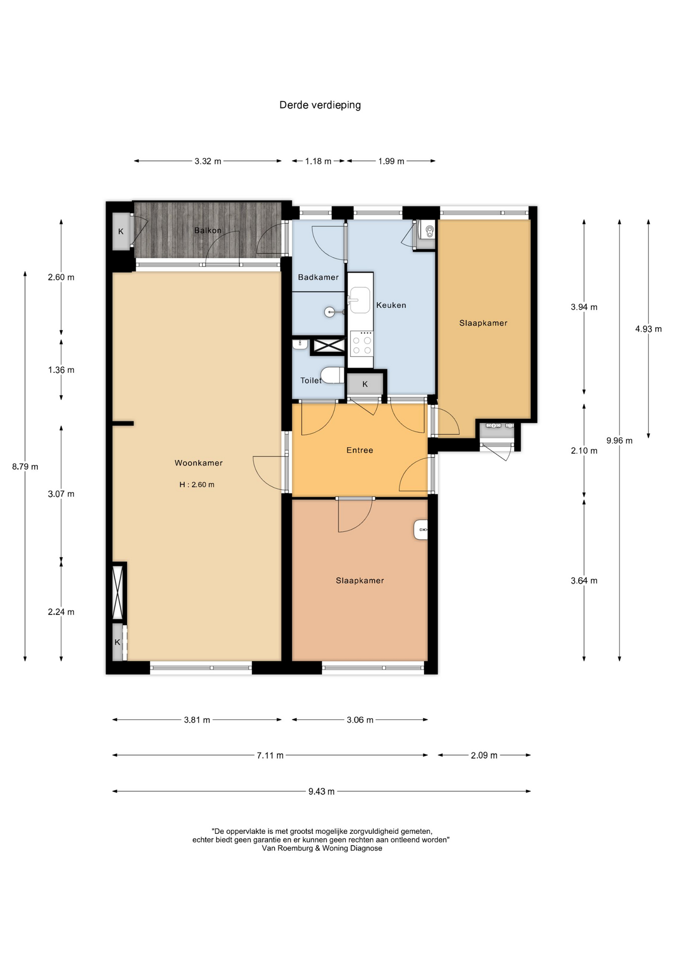 Indeling: Centrale entree/trappenhuis, entree tot het appartement, ruime hal, toilet met fontein, grote woonkamer (oorspronkelijk 2 kamers) met een fijn balkon aan de achterzijde dat gelegen is op het westen, 2 slaapkamers, moderne nieuwe keuken op dit moment voorzien van uitsluitend een afzuigkap. Nette doucheruimte welke vanuit de keuken en woonkamer bereikbaar is