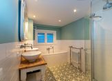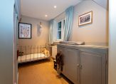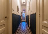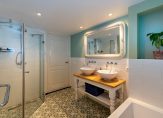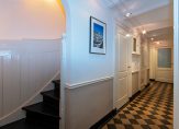 Overloop/gang met toegang tot de badkamer voorzien van een ligbad, douche en 2 wastafels, separaat toilet, diverse bergruimten en wasruimte, 4 slaapkamers, waarvan één met een inloopkast en met toegang tot de achtertuin.