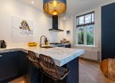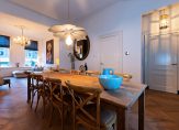 Deze woning is na aankoop door de huidige eigenaren enkele jaren geleden geheel in stijl met eersteklas materialen gerenoveerd met behoud van originele details. Op de begane grond vindt u de bijzonder sfeervolle entree met tochtdeur en hal, twee kamers en suite, eiken visgraat vloer, zeer fraaie open keuken en de toegang tot het balkon en de stadstuin. Het grote souterrain met 4 slaapkamers en een moderne, complete badkamer ligt op tuinniveau.