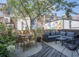 Een heerlijke ruimte om buiten te genieten is het grote terras waar je al vroeg in het jaar van kunt genieten. Dit geeft direct een relaxgevoel en is geweldig leuk in te richten met diverse potplanten waarbij je ook alle ruimte voor zowel een gezellige eethoek als een loungeplek hebt.