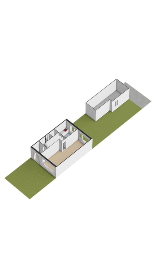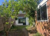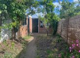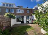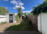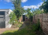 De zonnige achtertuin beschikt over een stenen garage en een achterom.