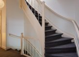 Indeling; Entree, kelder voor opslag, trap, overloop, twee kamers en suite met een zijkamer en een balkonkamer/serre met balkon aan de achterzijde, toilet, keuken, badkamer met douche en wastafel, slaapkamer. Tweede verdieping; Overloop, keuken, badkamer met douche en wastafel en witgoedaansluiting, 3 kamers.
