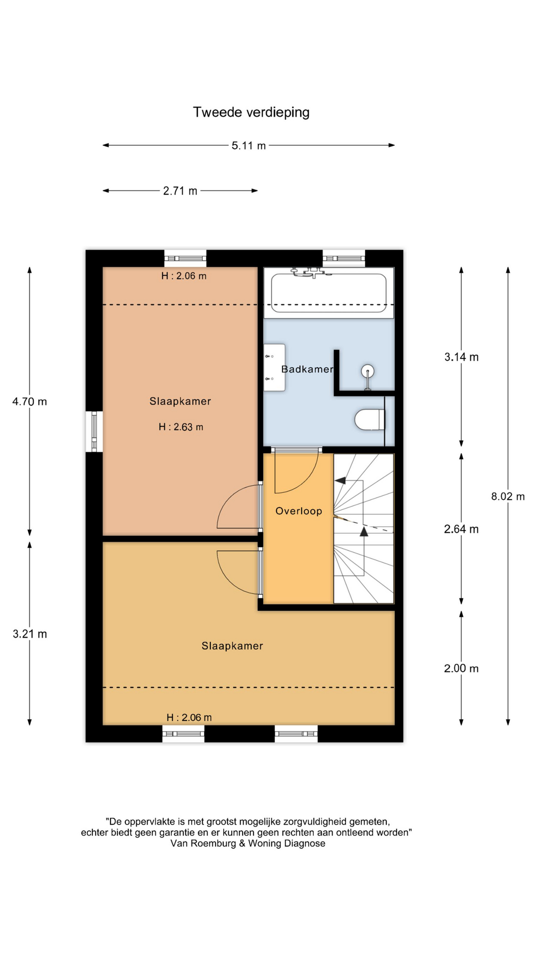 De tweede verdieping heeft nu 2 slaapkamers en een luxe badkamer met ligbad, dubbele wastafel, inloopdouche en tweede toilet.