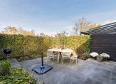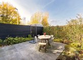 De fraai aangelegde tuin op het noordwesten (ca. 35 m²) nodigt uit om te genieten van de middag- en avondzon. Er is bovendien een houten berging aanwezig voor extra opslagruimte. Parkeren kan op je eigen parkeerplaats.