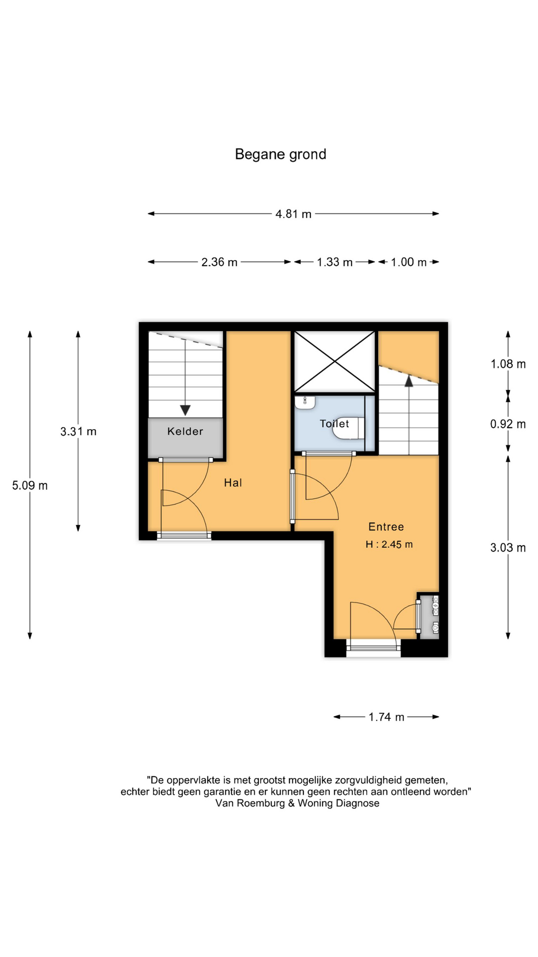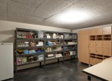 Entree/ruime hal met meterkast, toilet met fontein, bergruimte met toegang tot de ruime kelder die als opslagruimte maar ook eenvoudig als hobbyruimte te gebruiken is.