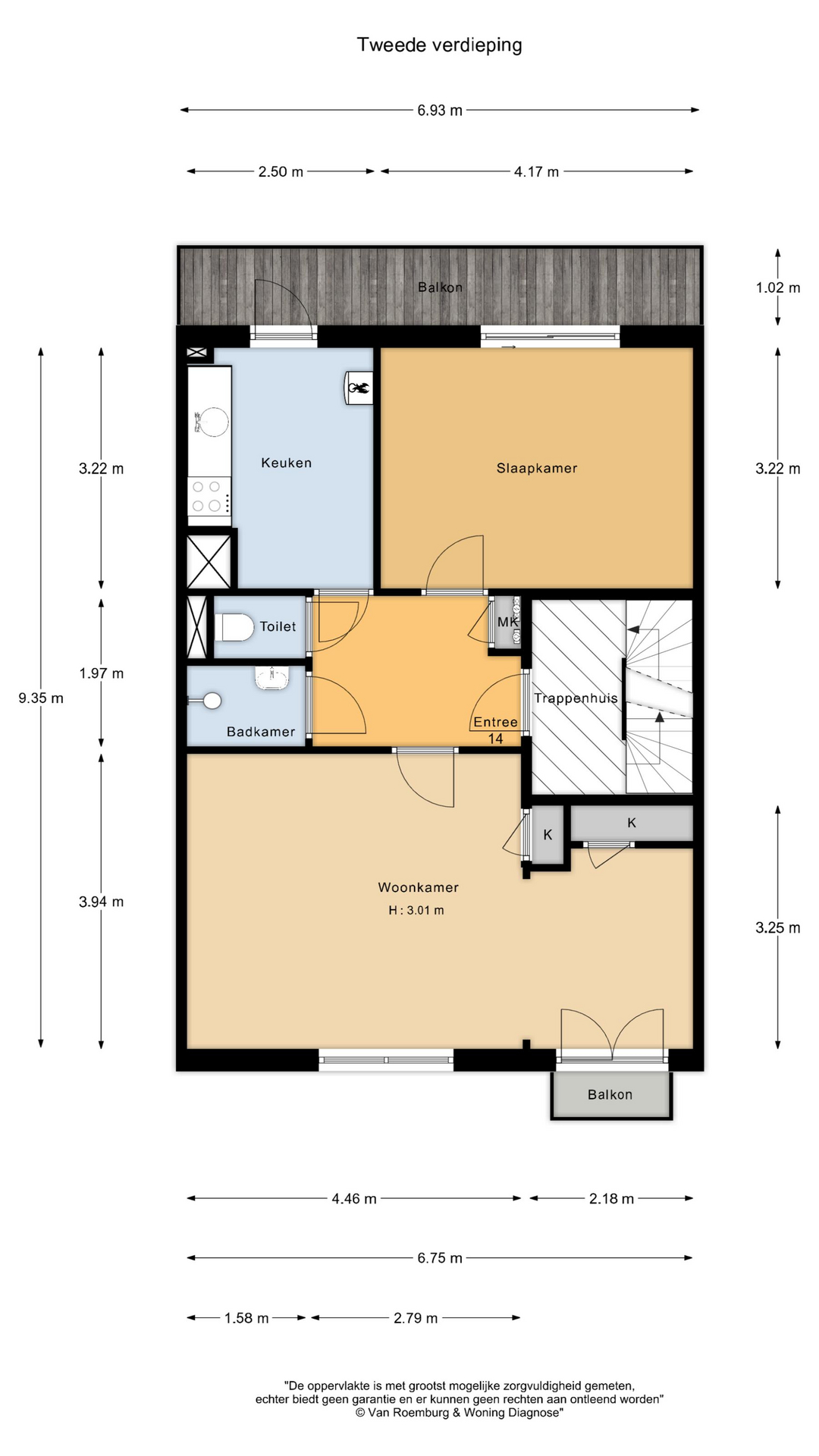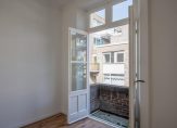 Entree/hal, bergkast, toilet, douche met wastafel, woonkamer met veel lichtinval en een balkon, ruime keuken aan de achterzijde met een balkon en de nieuwe c.v-ketel, slaapkamer met schuifpui en toegang tot het balkon.