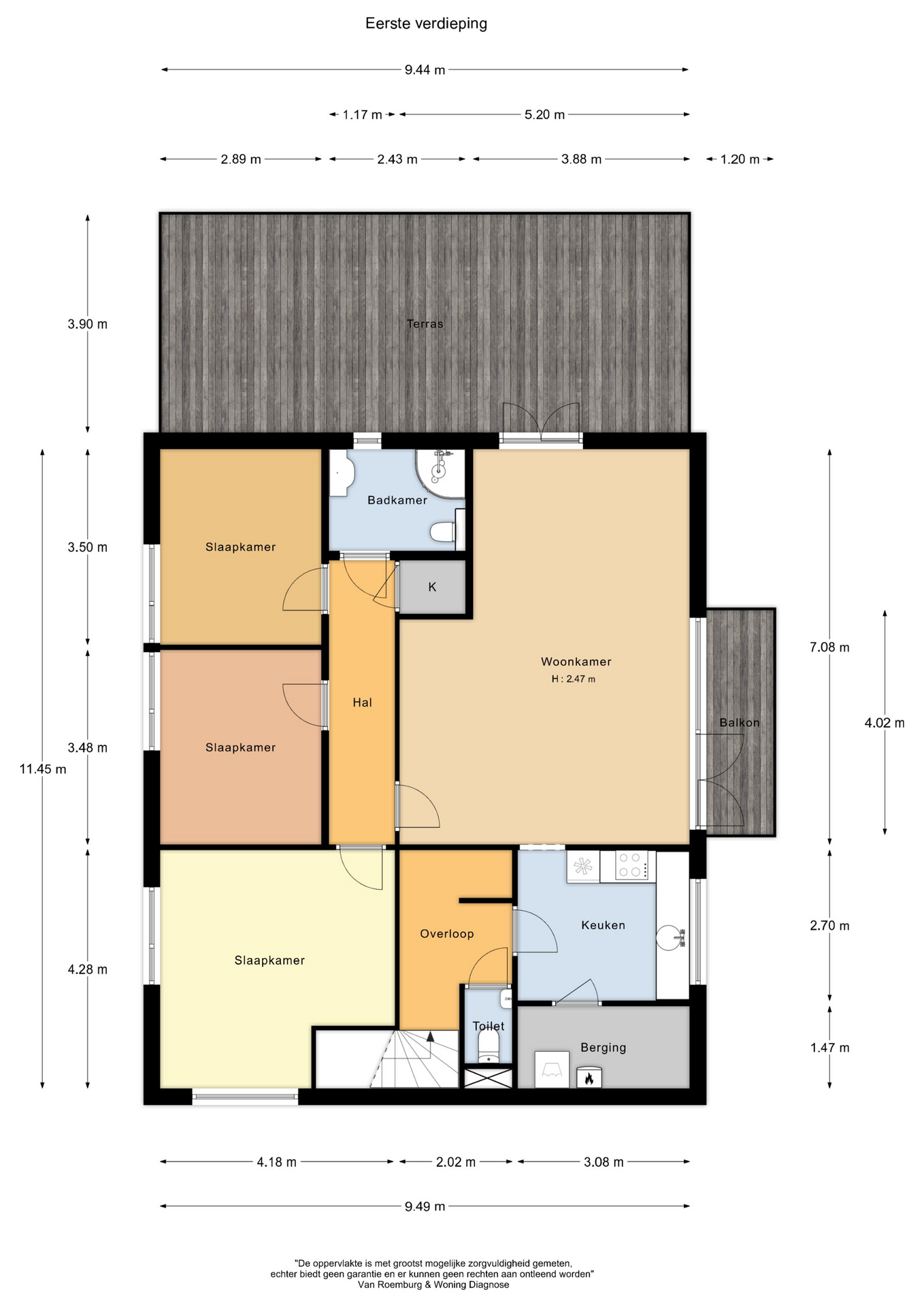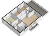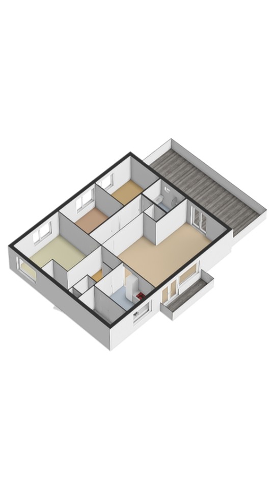 Vanuit de woonkamer heeft u toegang tot de gang, de 3 slaapkamers en de badkamer met douche, wastafel en toilet.