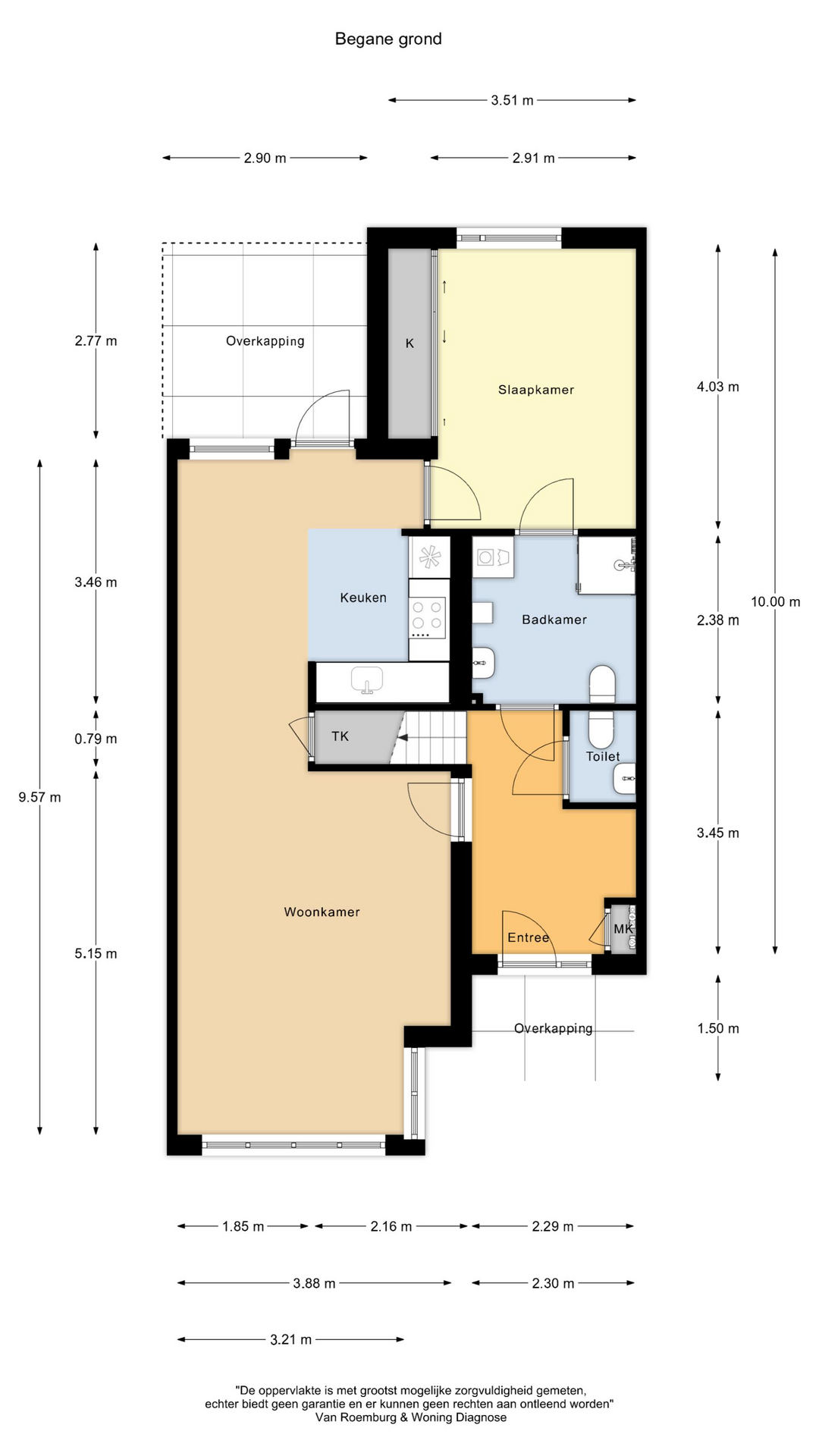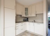 Indeling: Ruime entree met meterkast, een toilet en een lichte woonkamer met een plavuizen vloer. De open keuken is voorzien van diverse inbouwapparatuur. Achter de woonkamer is een aangebouwde overkapping, waar u heerlijk overdekt kunt genieten van het buitenleven.