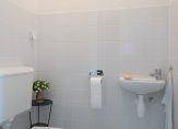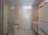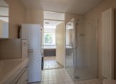 Op de begane grond bevindt zich ook een slaapkamer met aangrenzende ruime badkamer met een wastafel, een radiator, een douche, een tweede toilet en witgoedaansluiting.