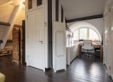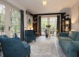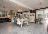 De begane grond van de villa is voorzien van een royale hal, een riante living met ornamenten plafond en openslaande deuren naar de veranda/serre, (gas) open haard, zijkamer/kamer en suite, een luxe woonkeuken met hoogwaardige Miele & Boretti apparatuur, bestaande uit o.a. een fornuis met geïntegreerde afzuigkap, vaatwasser, oven, stoomoven, magnetron, koffiemachine een bijkeuken en een inpandige garage. Op de eerste verdieping bevinden zich 3 slaapkamers, waaronder 2 ruime die beiden toegang hebben tot een prachtig balkon en 1 kleinere slaapkamer/kleedkamer, een zonneterras van 63m2, een ruimtelijke overloop met separaat toilet en een luxe badkamer met ligbad, inloopdouche en dubbele wastafel. De tweede verdieping biedt een riante 4e slaapkamer met dakkapel , werkhoek, CV/WTW ruimte en een eigen luxe badkamer met ligbad, douche, toilet, dubbele wastafel en dakramen.